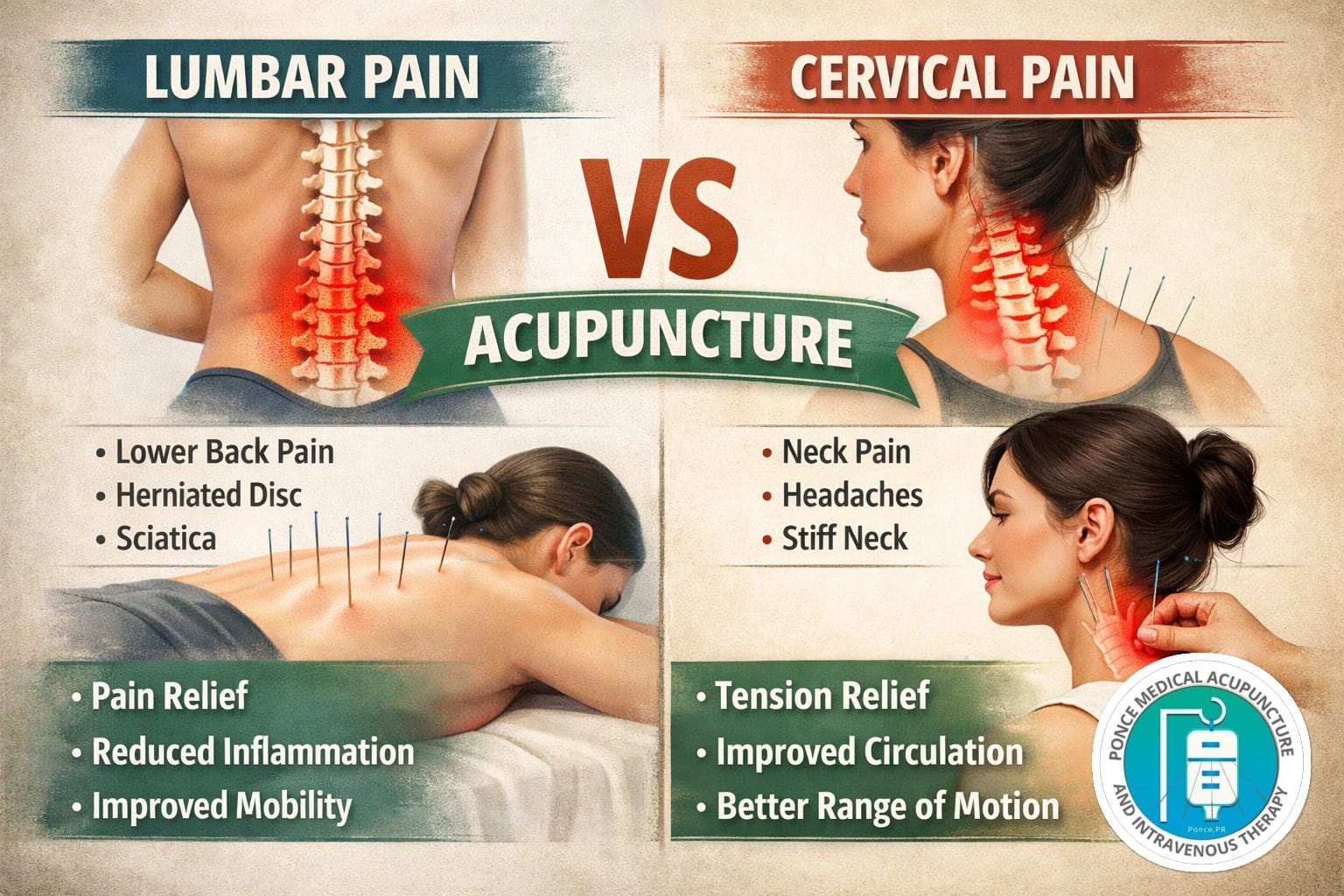 At Ponce Medical Acupuncture and Intravenous Therapy, acupuncture is used as part of an integrative approach to reduce pain, inflammation, and functional limitations.