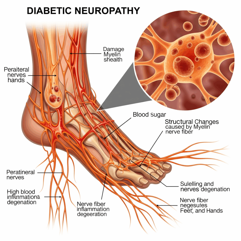 - Autonomic Neuropathy: Digestive issues (constipation, diarrhea), bladder problems, sexual dysfunction, and cardiovascular problems.